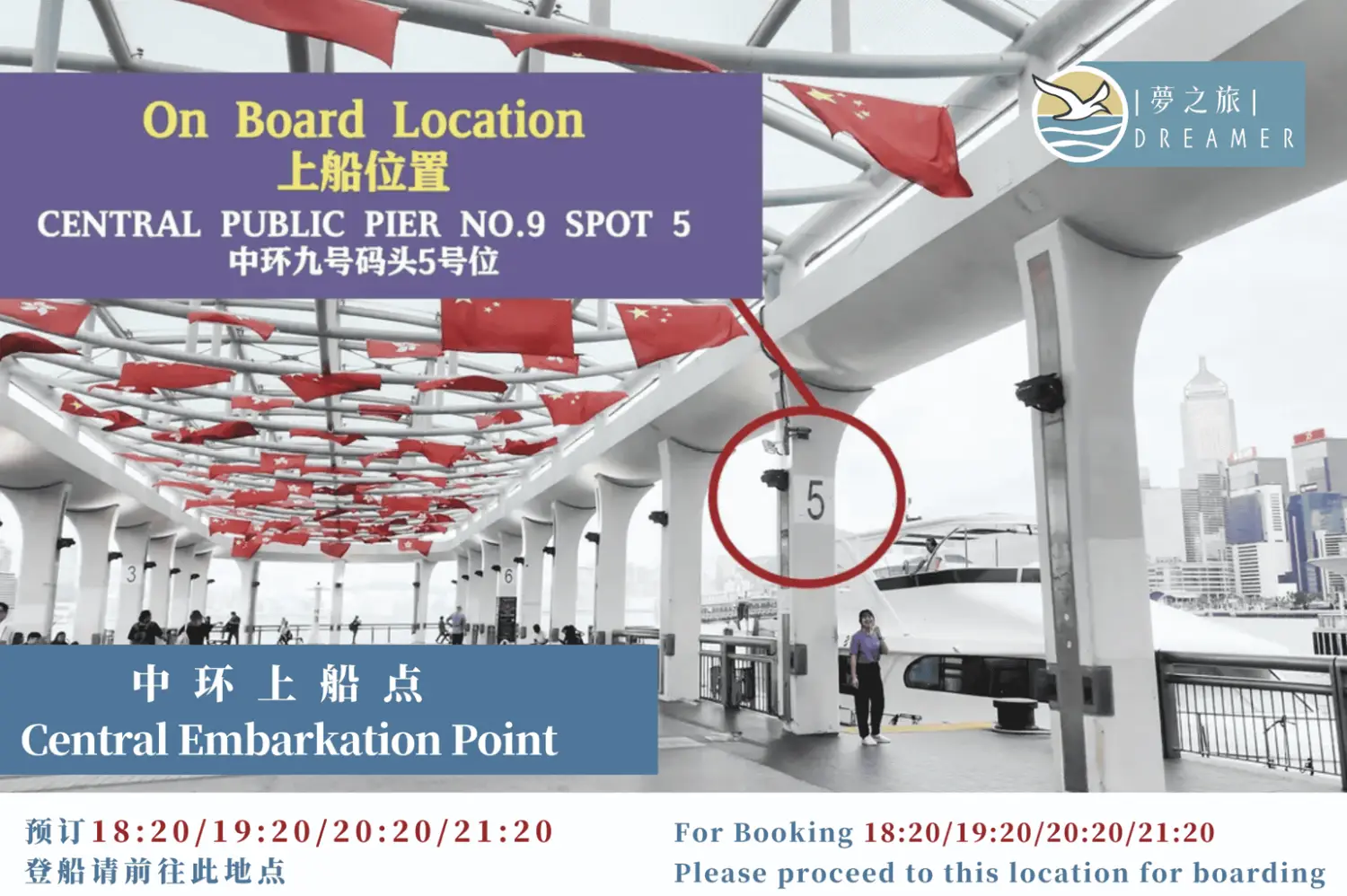 Look for staff wearing yellow vests with the "Dreamer" logo wording and present your voucher for check-in.